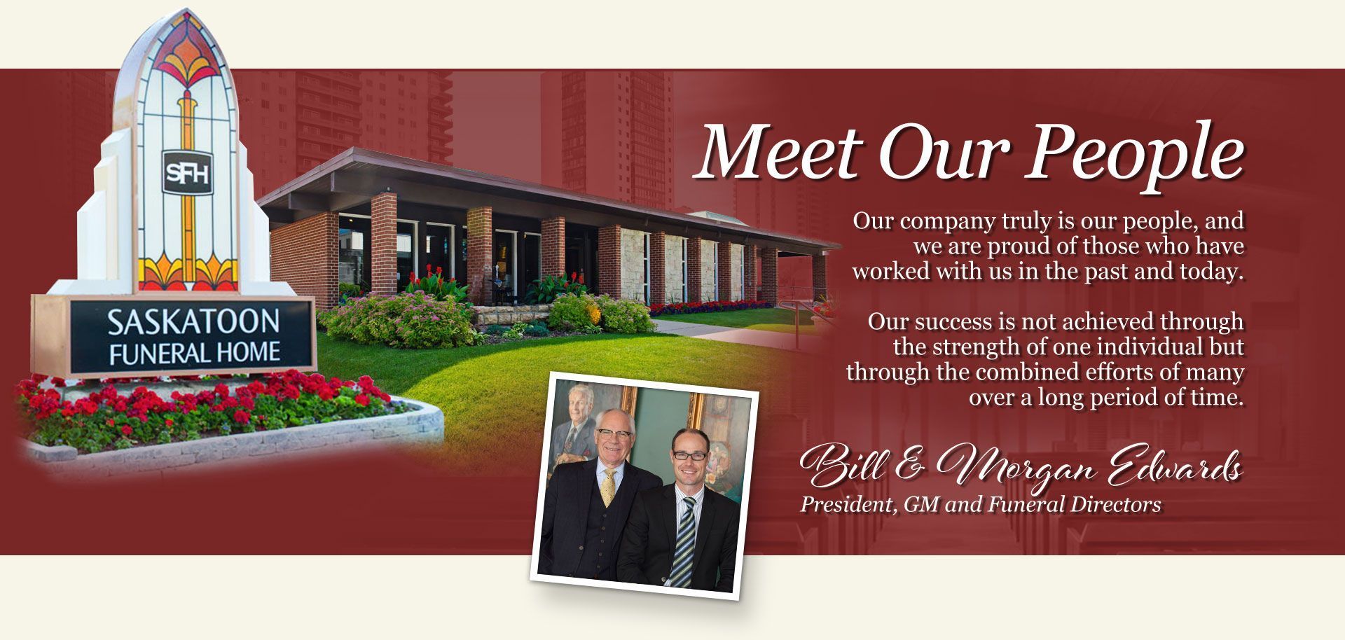 For over 100 years, the Saskatoon Funeral Home has responded to the needs of Saskatoon people of every faith and every walk of life. The late William A. Edwards founded the business in 1910, the start of a proud history as Saskatoon's longest-serving locally-owned, family-operated, full-service funeral and cremation provider to trace its roots to the beginning days of our city.